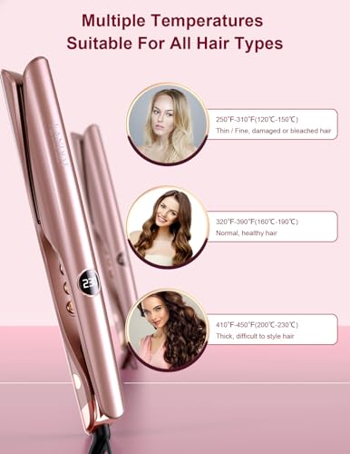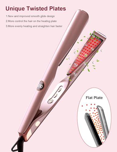 LANDOT Hair Straighteners and Curler 2 in 1 – Twist Straightening Curling Iron Combo for Curl Wave & Straighten Hair – Pro Multi-Styler with Gift Box