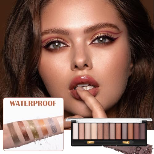 BUTBUT Eyeshadow Palette, 12 Shades High Pigment Eyeshadow Set, Eye Makeup Kit for Natural Looks and Long Lasting Shades, Matte and Shimmer Finishes, Portable Travel Eyeshadow-Palettes (Earth-Tone)