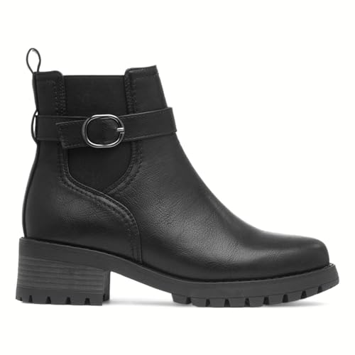 Step into style with the Lilley Marge women’s ankle boots. These boots feature a black upper, complete with an elasticated gusset, side buckle and zip fastening for easy wear. The padded lining ensures a comfortable fit, while the heeled, gripped outsole provides stability and height. A must-have addition to your autumn/winter wardrobe!