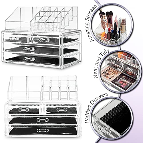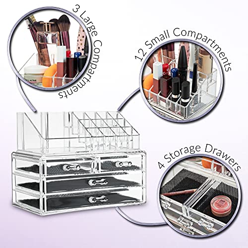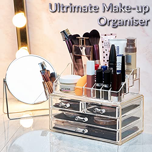 Make Up Organiser for Women Teenagers Acrylic Drawers Makeup Storage 12cm x 24cm x 22cm Clear Bathroom Bedroom Dressing Table Organiser Jewellery Beauty Skincare 4 Tier Cosmetic Storage Box