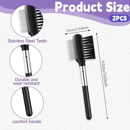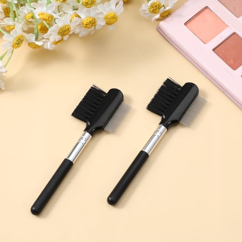 Small Eyelash Comb, 2 Pack Metal Eyelash Brush Eyelash Separator Tool Eyebrow Brush Grooming Eye Lash Separator Grooming Brushes Eyebrow Comb with Metal Teeth Eye Makeup Tool for Women (Short Handle)