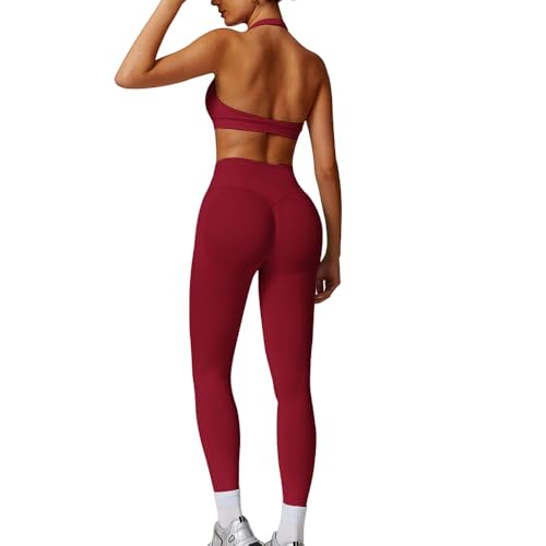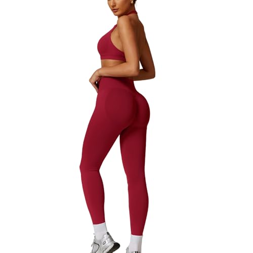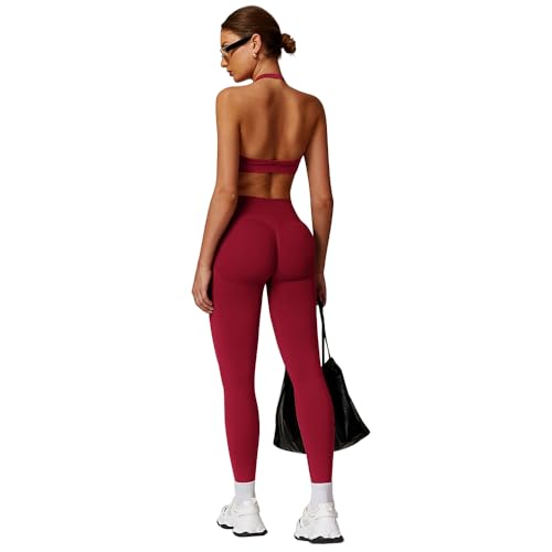 JN JANPRINT Seamless Gym Sets for Women 2 Piece Halter Backless Sports Bras Hidden Scrunch Leggings Yoga Outfits Workout Tracksuit